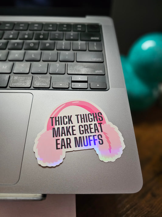 Inappropriate Sticker "Thick Thighs Make Great Ear Muffs" Perfect for Water Bottles, Laptops, and More