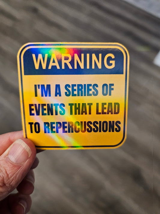Funny Sticker "Warning I'm a Series of Events That Lead to Repercussions" to Add Some Humor and Warning to Your Belongings and More!