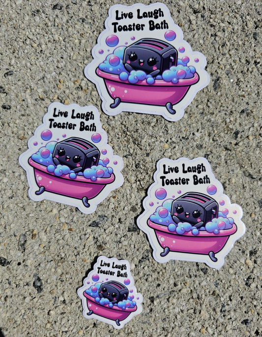 Live Laugh Toaster Bath – Kawaii Vinyl Sticker | Dark Humor | Snarky & Edgy Design