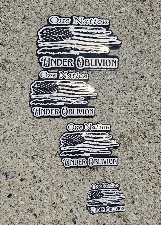 One Nation Under Oblivion - Vinyl Sticker | Tattered American Flag | Edgy Patriotism with a Dose of Reality