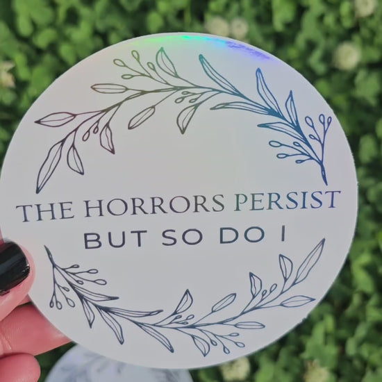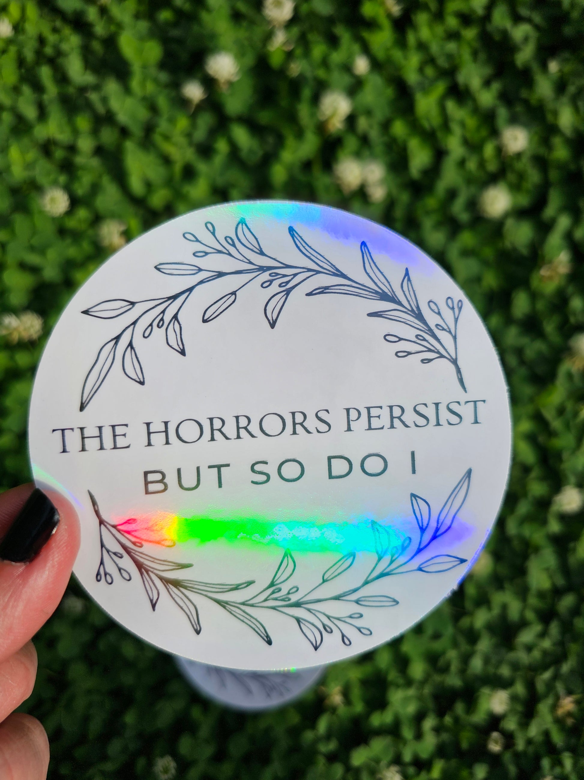 Vinyl Sticker "The Horrors Persist But So Do I"β because life's a horror show, but hey, you're the star who refuses to exit the stage!